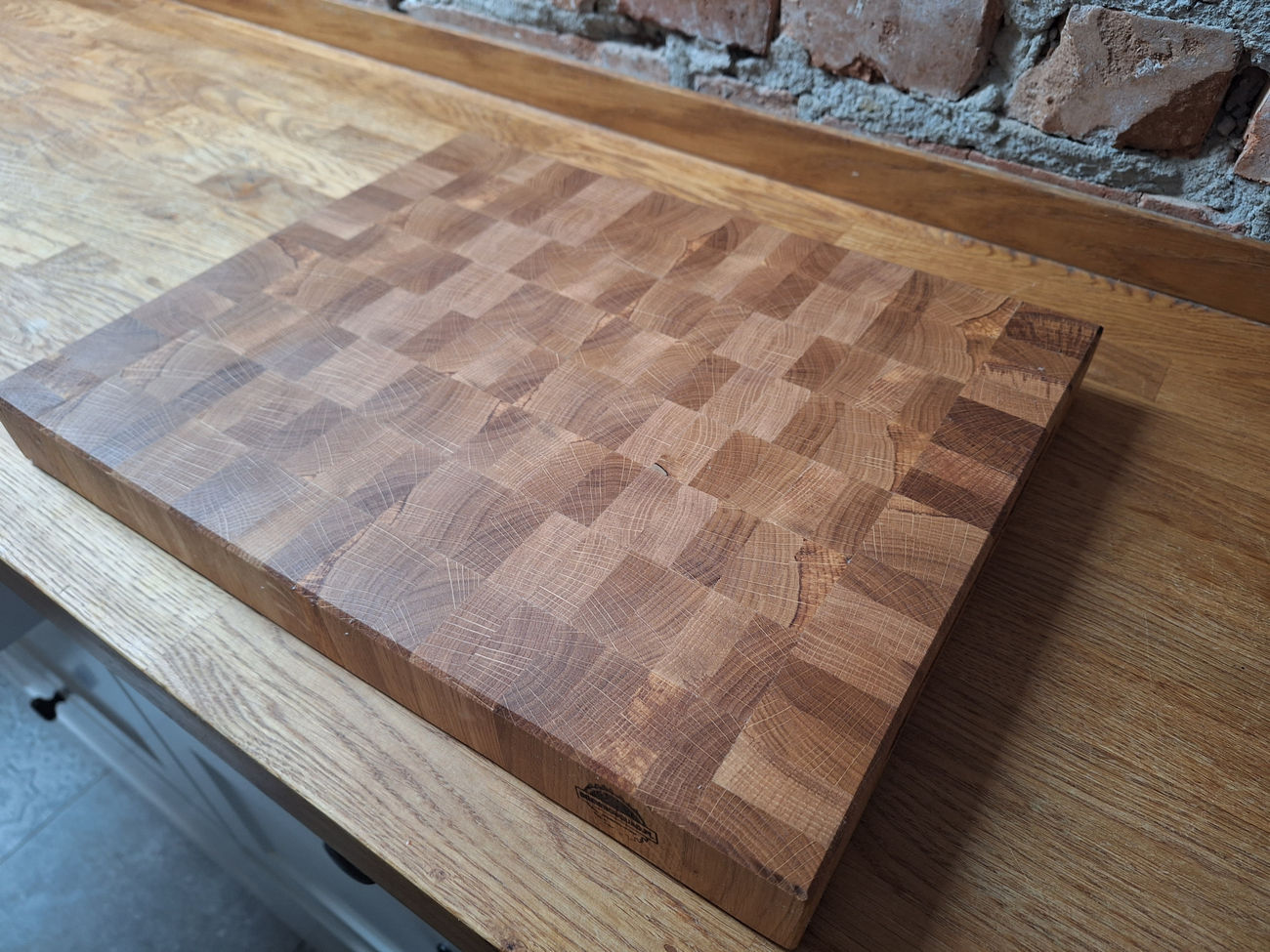 Deska debowa klejona sztorcowa mega twarda wymiar 40cm x 30cm gr 4cm zabezpieczona olejem Lnianym+Top olej Osmo (Według norm DIN 68861-1A przystosowany do kontaktu z żywnością).
